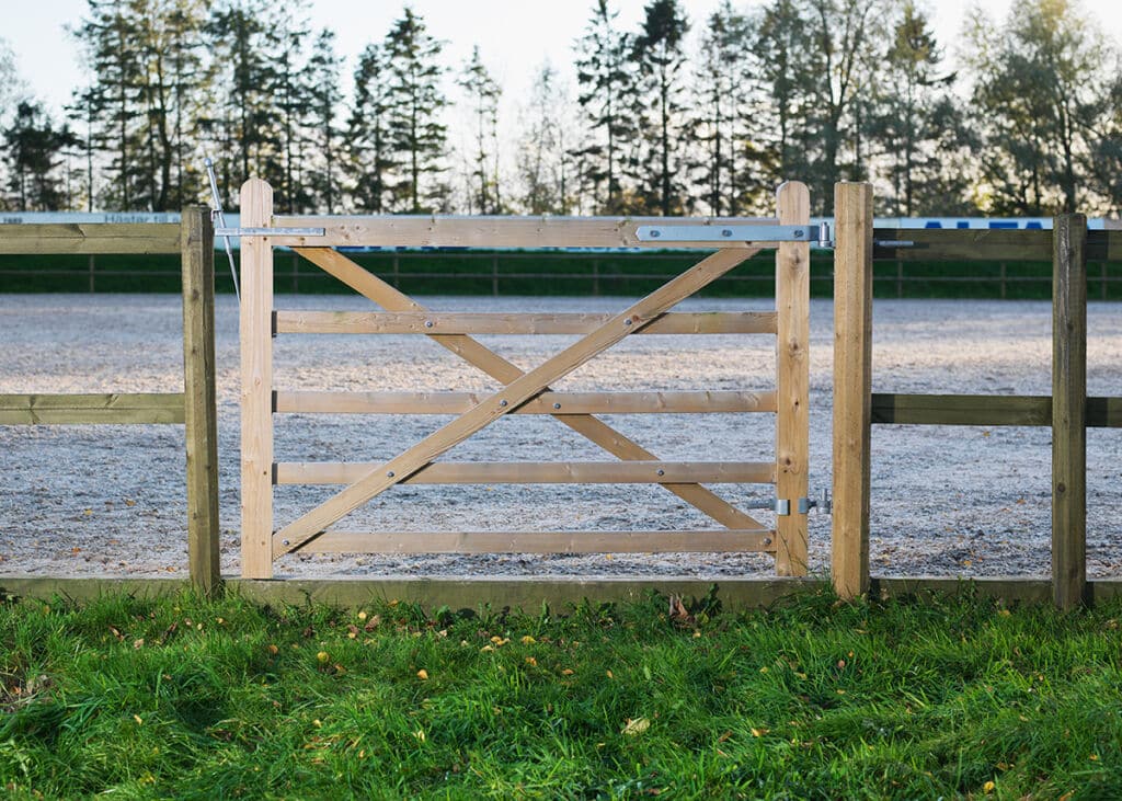 Fjærlåsen vises oppe til venstre på porten.